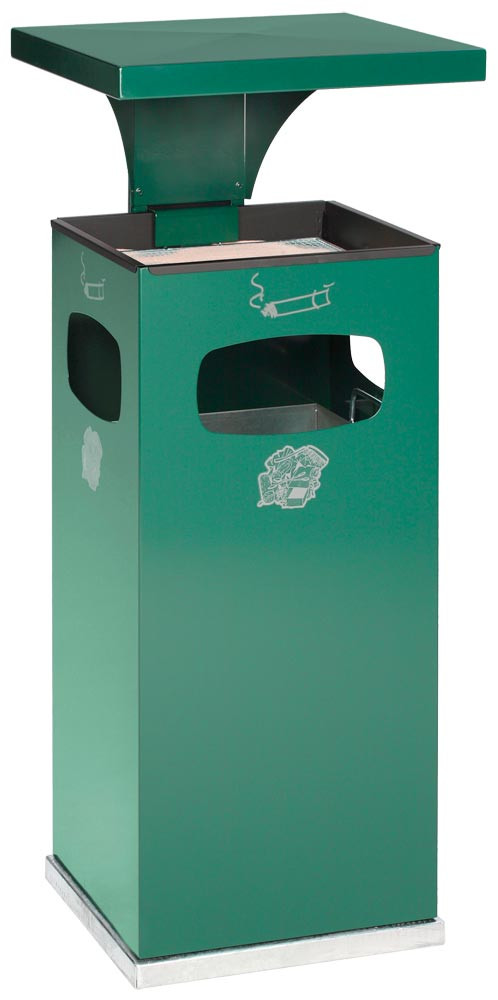 Eckiger Kombi-Ascher, verz. Sieb, Dach, verz. Inneneimer 38 l, RAL 6005, BxTxH 395x395x910 mm EP517702