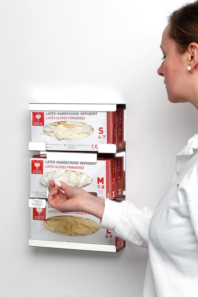 Edelstahl Halterung, 3-fach für Handschuhboxen, offen, 250x80x390 mm, inkl. Montagematerial