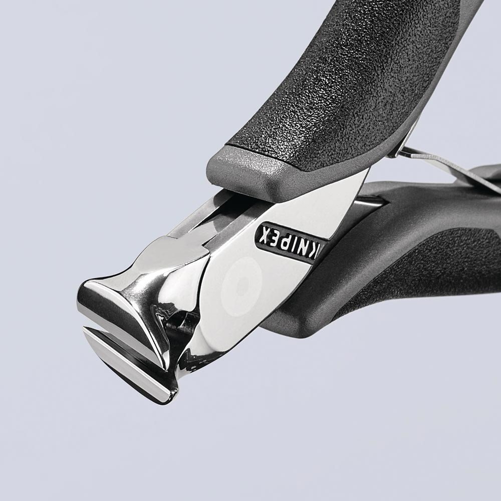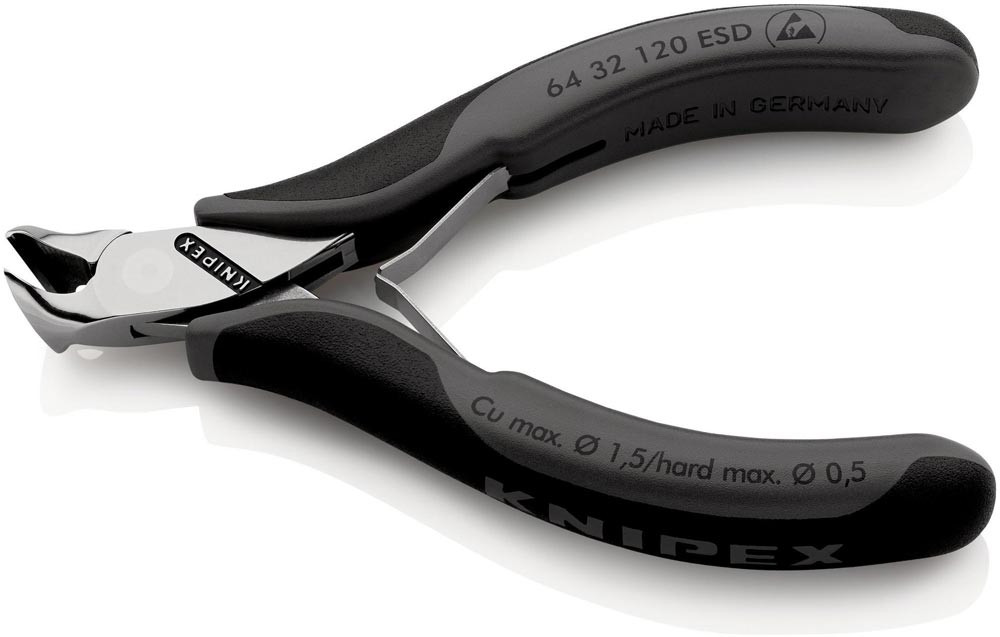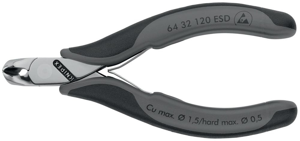 ESD · für feinste Schneidarbeiten z. B. in Elektronik und Feinmechanik · durchgestecktes Präzisionsgelenk · Schneiden zusätzlich induktiv gehärtet, Schneidenhärte ca. min. 56 HRC · Spezial-Werkzeugstahl in Sondergüte, geschmiedet, mehrstufig ölgehärtet · elektrisch ableitend - dissipativ
