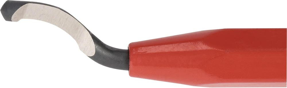 zum Entgraten von Kanten, Rohren und Stahl-, Aluminium-, Messing-, Kupferblechen, Gusseisen und Kunststoffplatten mit Ø 6 - 400 mm · Klingen auswechselbar · kleine handliche Kugelschreiberform mit Halteklipp, ideal für die Unterbringung an der Arbeitskleidung · gute Einhandbedienung durch stabile Bauweise und schmale Form, versetzte Flächen sorgen für ein gutes Drehmoment · mit HSS Entgraterklinge