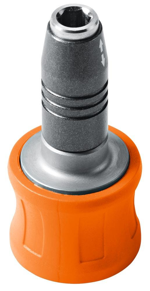 Lieferumfang: QuickIN Bohrfutter, QuickIN Bithalter, QuickIN Gewindebohr-Spannzange 4,5 + 6 mm, Bit-Set, HSS-Spiralbohrer-Set und HSS-Gewindebohrer-Set in L-BOXX (ohne Akku/Ladegerät)