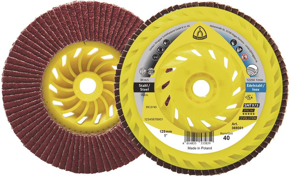 Fächerscheibe SMT 975 Ø 125 mm Körnung 80 mm gewölbt 6 Stahl keramischer Korund