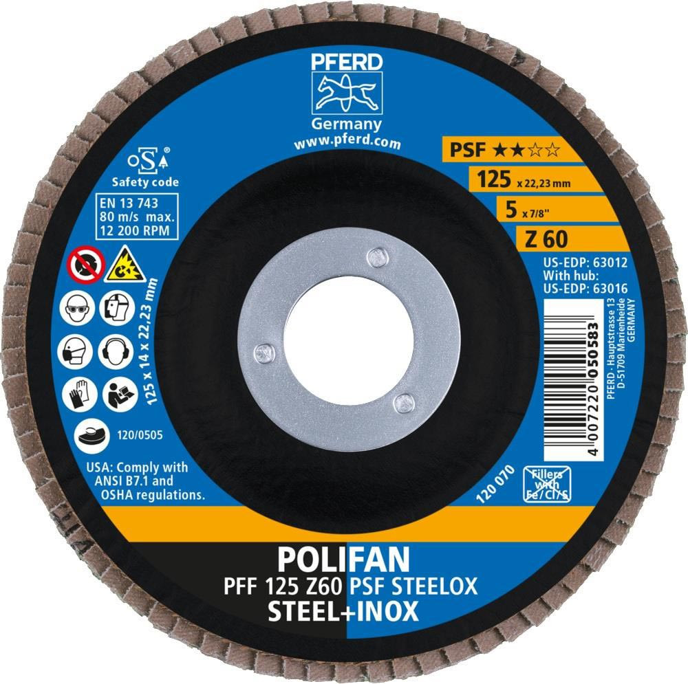 Fächerschleifscheibe Ø 125 mm Körnung 60 flach Edelstahl (INOX) Zirkonkorund Z