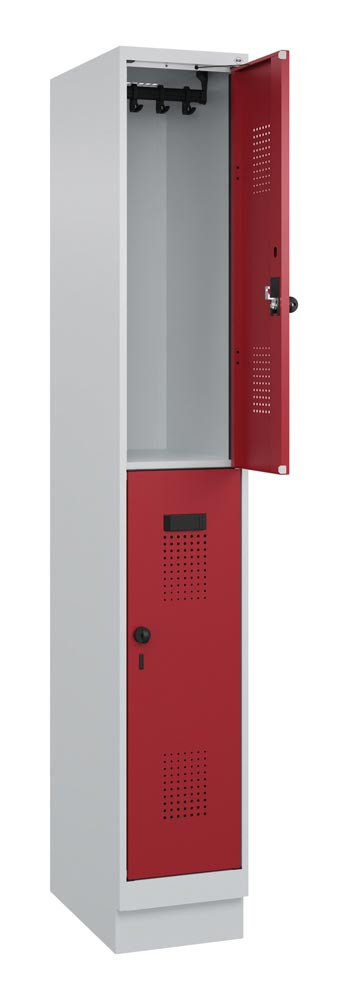 Fächerschrank, Stahl, doppelstöckig, 1x2 Fächer, Abt.B 300 mm, Sockel, Drehriegel, BxTxH 300x500x1950 mm, Farbwahl