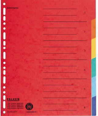 Falken Register 80001993 DIN A4 6teilig Manilakarton farbig