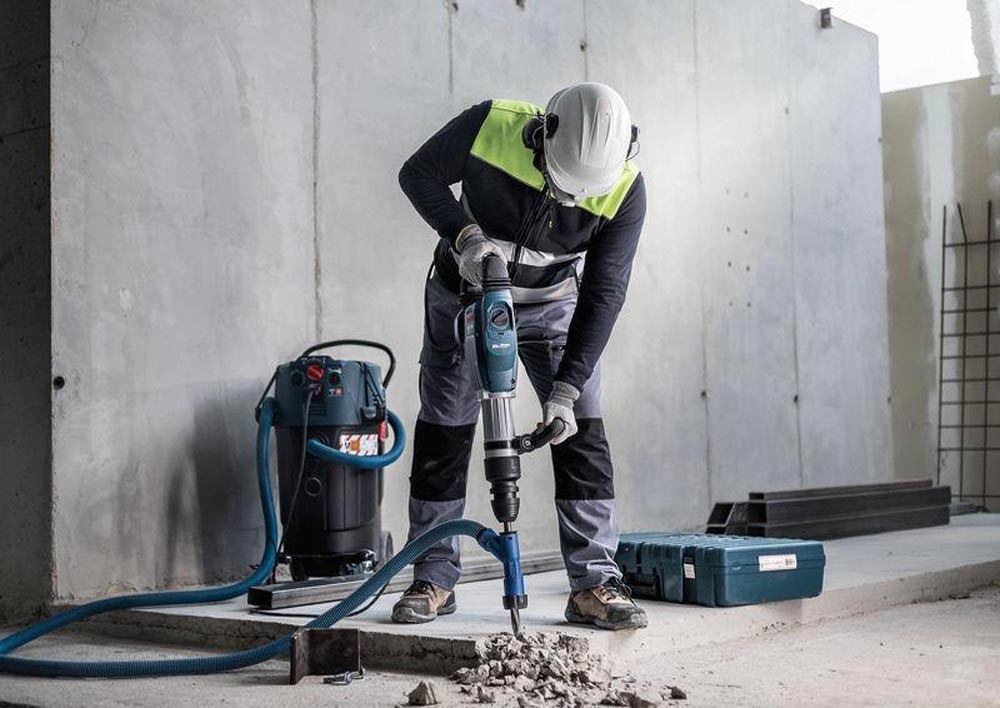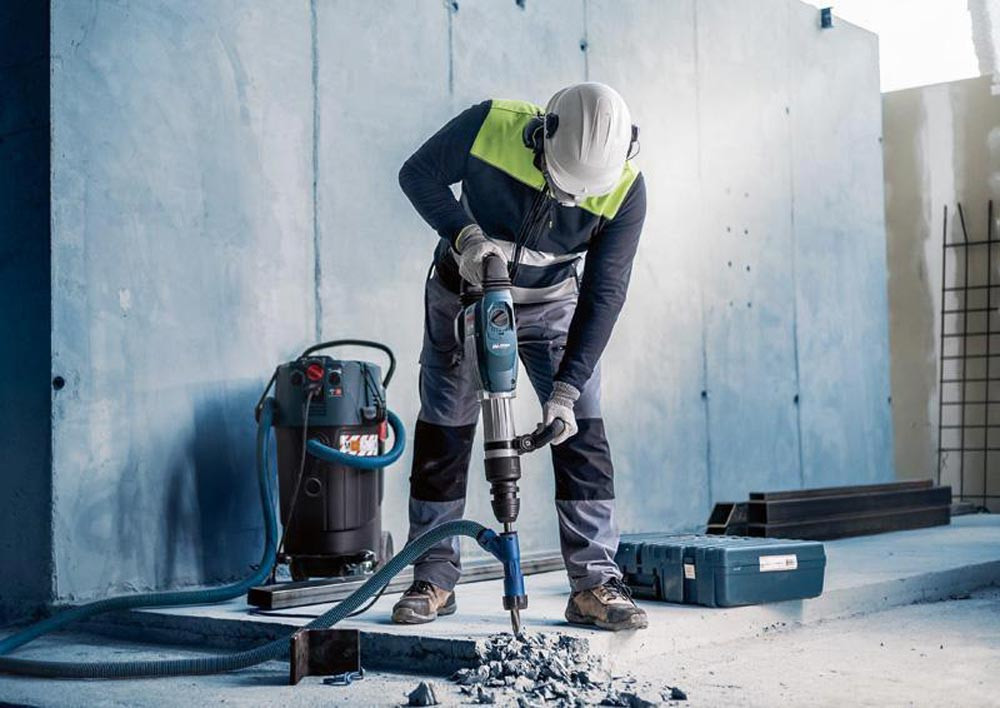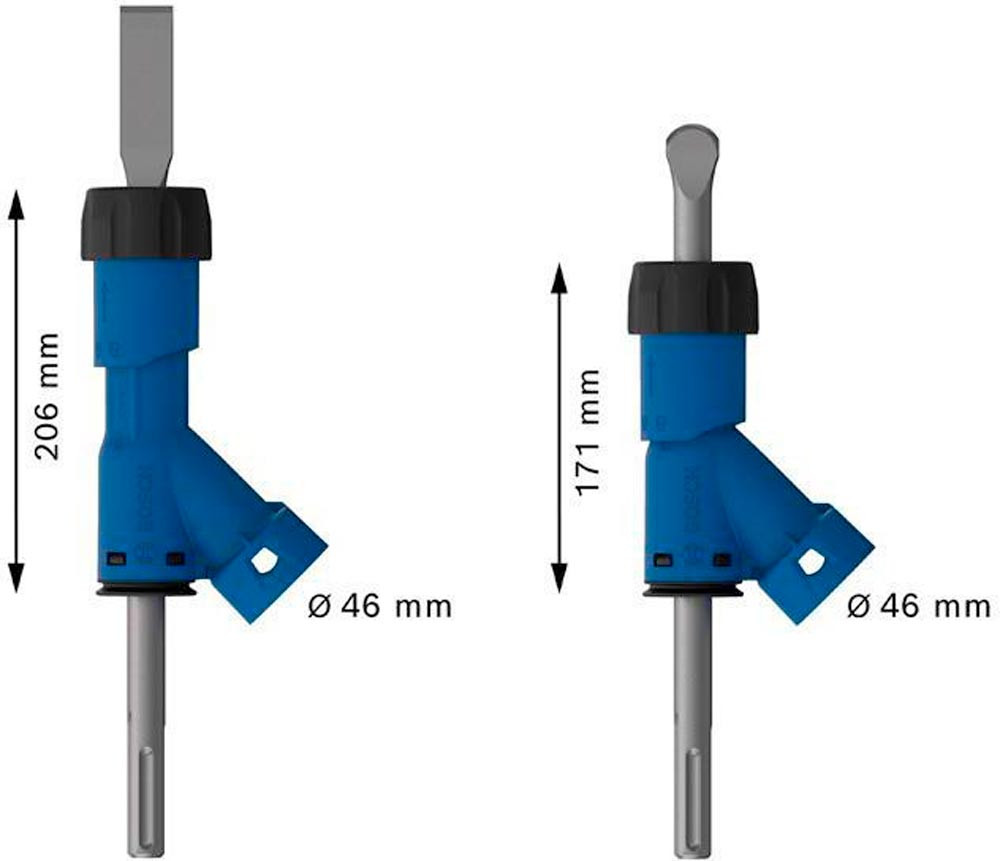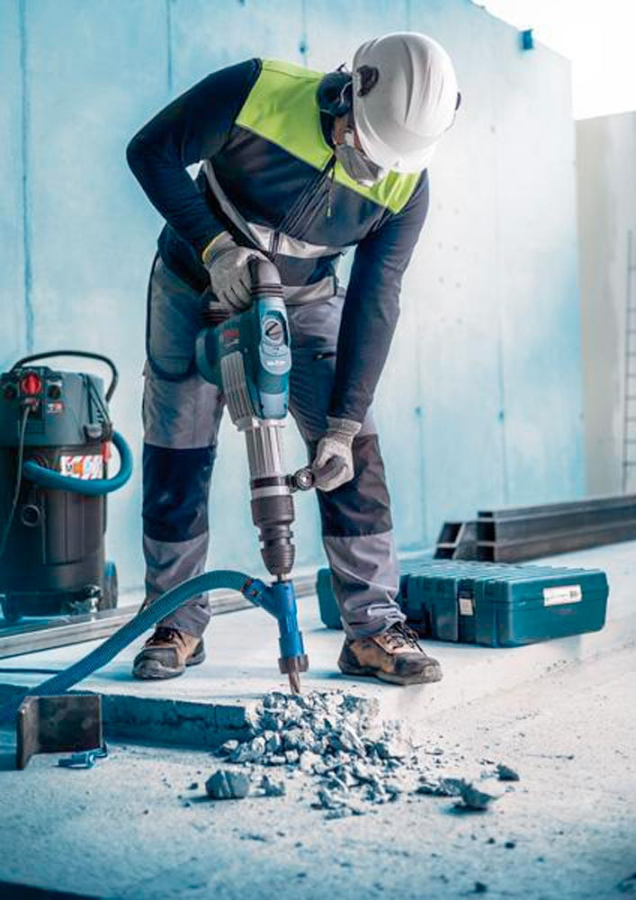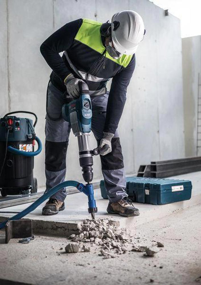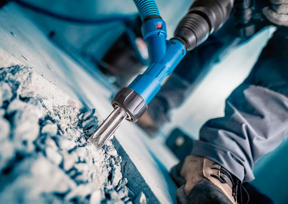 verbesserte Staubreduzierung beim Aufbrechen von Beton · das RTec-Element sorgt für einen höheren Materialabtrag · für Betonabbrucharbeiten wodurch viel Betonschutt entsteht und die Atemluft mit Staub belastet wird · mit EXPERT SDS Clean Set for Chiselling, damit die Umgebungsluft während der Arbeit möglichst sauber gehalten wird · Adapter kann mit dem RTec-Element für den Energiereflexionseffekt problemlos an selbstschärfenden Bosch SDS max Meißeln montiert und an einen Staubsauger angeschlossen werden · hocheffizienter Abtransport von Staub mit Bosch Particle Control