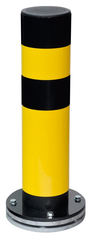 ∙ Extrem belastbarer, flexibler Poller aus Gütestahl ∙ Beim Aufprall schwingt der Poller aus, dadurch wird die Energie direkt absorbiert (progressive Kraftaufnahme) ∙ Zusätzlich Drehbar durch massive Stahl-Bodenplatte mit 6 eingelassenen Kugellagern · Seitliche Kräfte werden durch Drehen, frontale Kräfte durch das Nachgeben absorbiert · Innenliegende Stahlspiralfeder ∙ Fußteil mit PU-Puffer ∙ Rohrdurchmesser 159 mm ∙ Wandstärke 4,5 mm ∙ Bestens geeignet für kritische Einsatzbereiche wie z. B. LKW- und Staplerverkehr, Einfahrten, Gebäudeecken etc. ∙ Zum Aufdübeln mit runder Bodenplatte 270 x 10 mm ∙ Neigung bis 25° (ca. 310 mm) · Farbe gelb mit schwarzen Signalstreifen