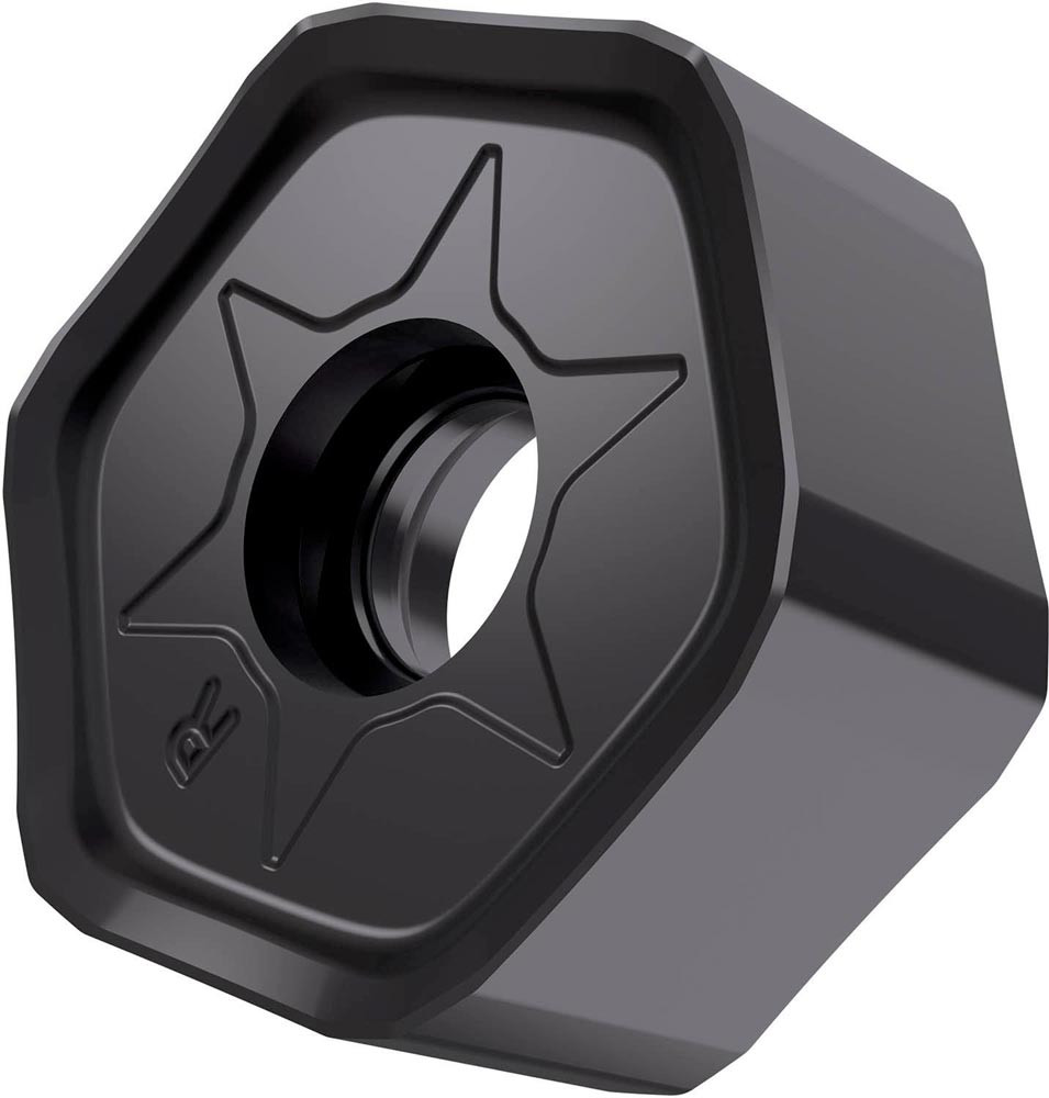 Doppelseitige Fräswendeschneidplatte HNGX 0906 · Hektagonal für eine maximale Schnitttiefe von 5.0mm · mit eine Indexierungsgenauigkeit gemäß ISO-Toleranzklasse-G und R Geometrie mit verrundeter und facettierter Schneidkante · 8215 PVD Beschichtung WC-Co Feinkornsubstrat in den ISO-Gruppen P10 -P20 und K10 -K25 zum bearbeiten von Stahl und Gusseisen mit Planfräsern SHN09C