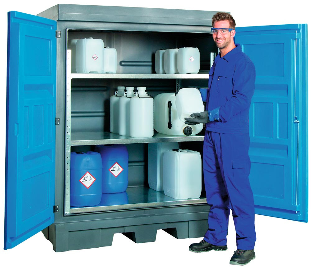Gefahrstoff-Depot aus Polyethylen, zur Lagerung von Kleingebinden, Auffangvolumen 250 l, BxTxH 1560x1080x1980 mm EP557265