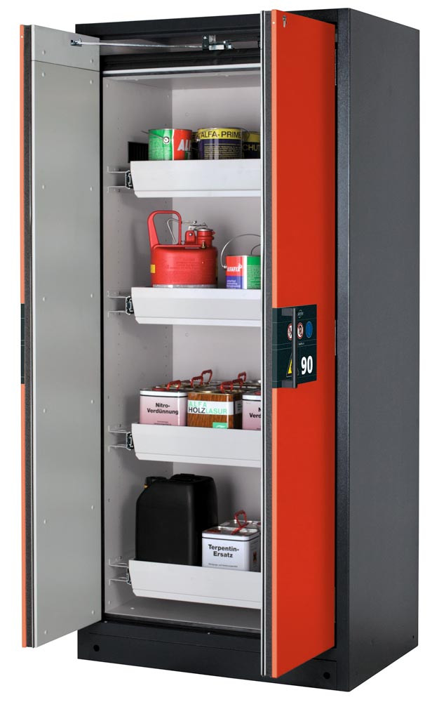 Gefahrstoffschrank, BxTxH 893x615x1953 mm, 4 Auszugswannen, inkl. TSA, AGT, RAL 7016/3020