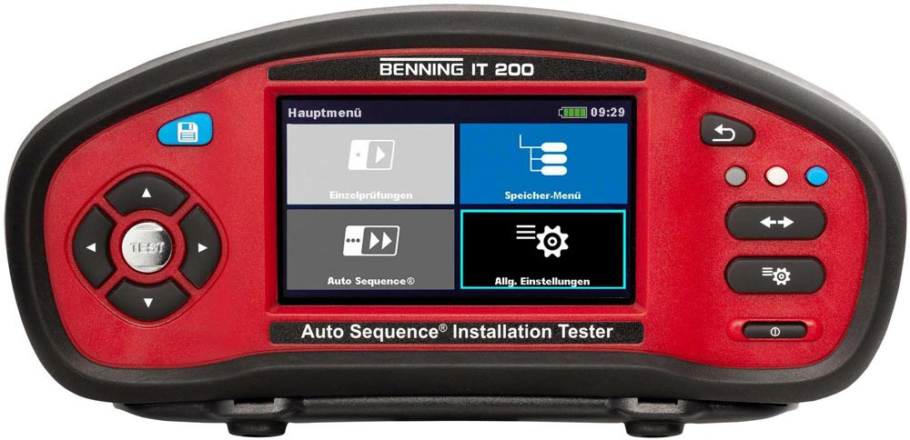 Auto Sequence® Installationsprüfgerät für die rationelle Prüfung und Dokumentation elektrischer Anlagen und EV-Ladestationen (Wallboxen) der Ladebetriebsart 3 · Installationstester BENNING IT 200 unterstützt die vollständige VDE-Prüfung in elektrischen Anlagen nach Errichtung, Änderung oder als regelmäßige Wiederholungsprüfung (DIN VDE 0100/0105, IEC 60364).