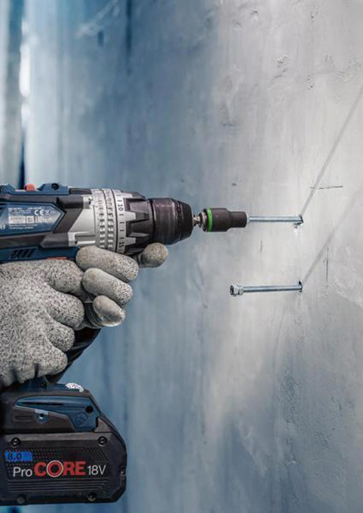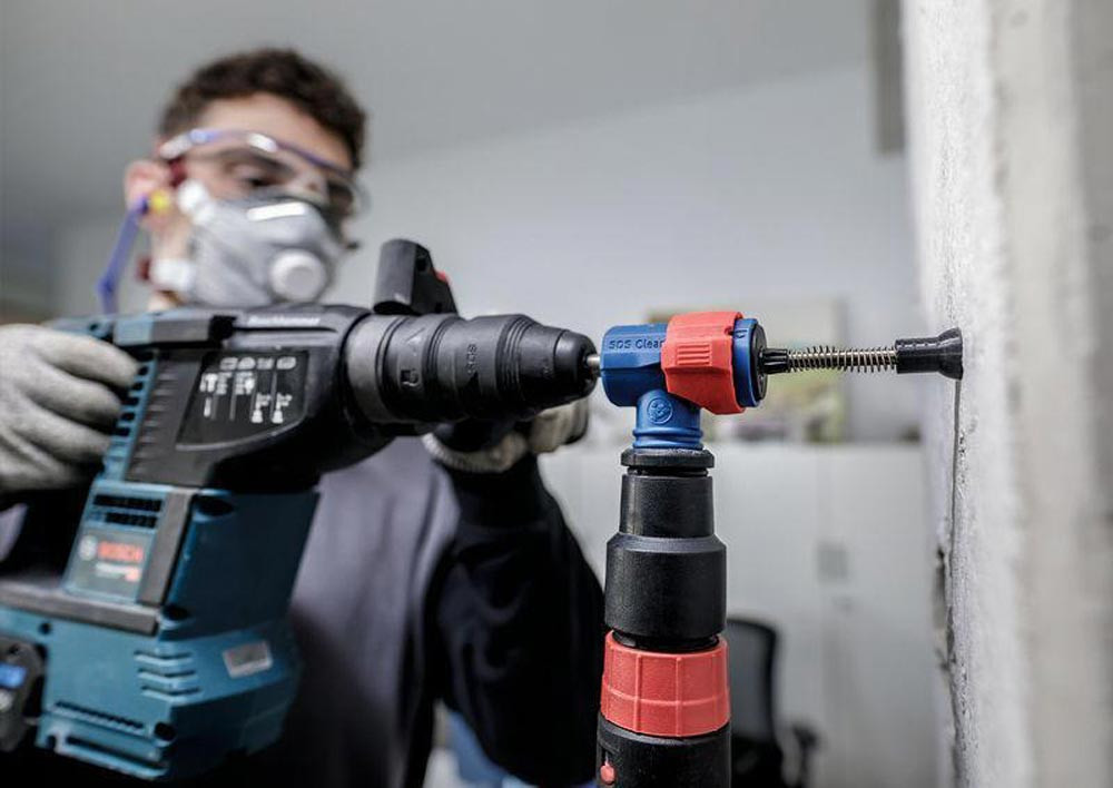 Bohren in Stahlbeton mit verbesserter Staubreduzierung! Durchdringt Stahlbeton mit einem Voll-Carbide-Kopf mit 4 Schneidern Installateure und Bauarbeiter wissen nur zu gut · dass beim Bohren in Beton große Mengen an Staub anfallen. Besonders unangenehm ist dies beim Bohren über Kopf oder beim Bohren und Reinigen für chemische oder mechanische Dübel. Für diese anspruchsvollen Arbeiten haben wir das EXPERT SDS Clean plus-8X Set entwickelt. Mit diesem Set bohrst und entfernst du gleichzeitig Staub und Bohrmehl · sodass mühsame Reinigungsarbeiten entfallen. Mit EXPERT SDS Clean plus-8X Set wird der Staub beseitigt · wenn du über Kopf oder eine ganze Reihe von Löchern für mechanische oder chemische Dübel bohren musst. Der Bohrer ist mit einem Vollhartmetallkopf mit 4 Schneiden und innenliegendem Absaugkanal ausgestattet. Zudem haben wir den SDS Clean plus Anschluss verbaut · der für alle SDS Clean plus-8X Bohrer geeignet ist und sich leicht montieren und abnehmen lässt. Er verbindet die Bohrmaschine mit Staubabsaugungen · sodass Staub und kleines Bohrgut durch den integrierten Absaugkanal aus dem Bohrloch extrahiert werden kann. Die vormontierte Staubkappe unterstützt das Auffangen von Schmutz und Staub · sobald du mit dem Bohren beginnst. Hocheffizienter Abtransport von Staub mit Bosch Particle Control