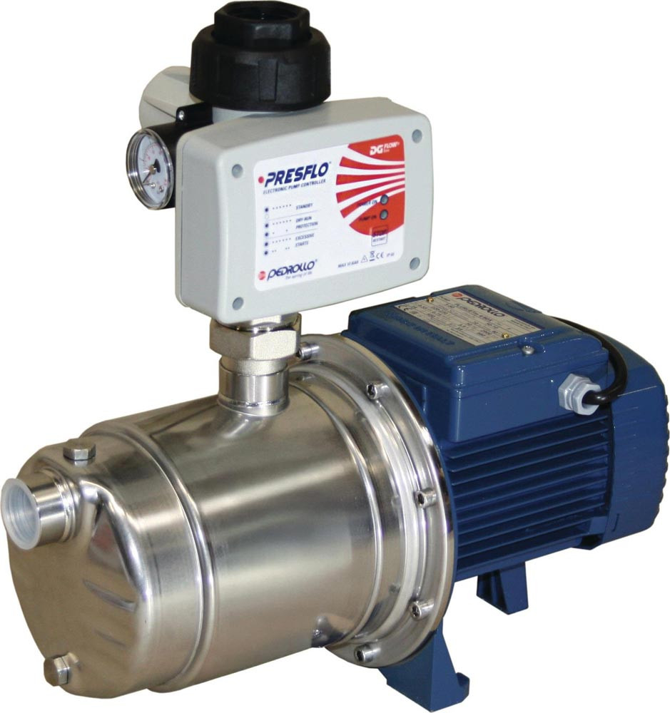 für den vielseitigen Einsatz in der Gartenbewässerung und privaten Wasserversorgung · Edelstahlpumpe zeichnet sich durch höchste Energieeffizienz und hohe Förderleistung aus · durch die Pumpensteuerung Presflo startet und stoppt die Pumpe bei Bedarf automatisch · ebenso schützt die Presflo die Pumpe vor Schäden durch Trockenlaufen · anschlussfertig verkabelt