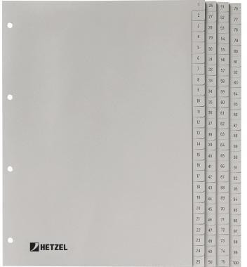 Hetzel Register 721311 DIN A4 1-100 100-teilig PP grau