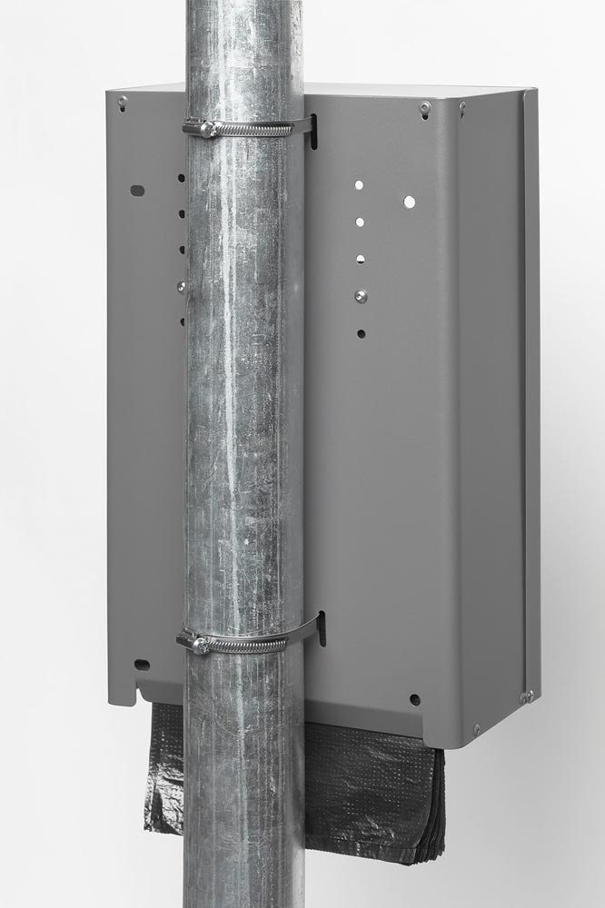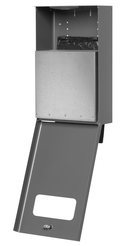 ∙ Gefertigt aus verzinkten Stahlblechteilen mit Oberflächenschutz durch eine hochwertige Pulverbeschichtung auf Polyester-Basis ∙ Rückteil mit Lochstanzung für ein variables Einstellen der Beutelaufnahme ∙ Ausgestatttet mit einem Dreikantschloss inkl. Inneneinsatz aus verzinktem Stahlblech ∙ Volumen ca. 7 l ∙ Inkl. Piktogramm-Aufkleber und Montagematerial zur Rohr- oder Wandbefestigung ∙ B x T x H 265 x 148 x 430 mm