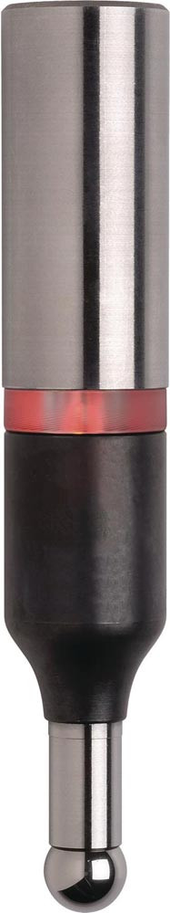 zum exakten Ermitteln von Werkstücknullpunkten und Bohrungsmittelpunkten auf Fräsmaschinen, Bohrmaschinen, Bearbeitungszentren usw. · bei Kontakt, der in den Achsen X und Y ausfedernden Tastkugel mit dem Werkstück, schließt der Stromkreis und die rundumleuchtende Anzeige leuchtet auf · die 3D-Ausführung verfügt zusätzlich über einen Sicherheitsfederweg von 2 mm in der Z-Achse · die Bezugslänge muss zuvor in einem Voreinstellgerät vermessen und berücksichtigt werden · Genauigkeit ± 0,01 mm · Tastkugel-Ø 10 mm