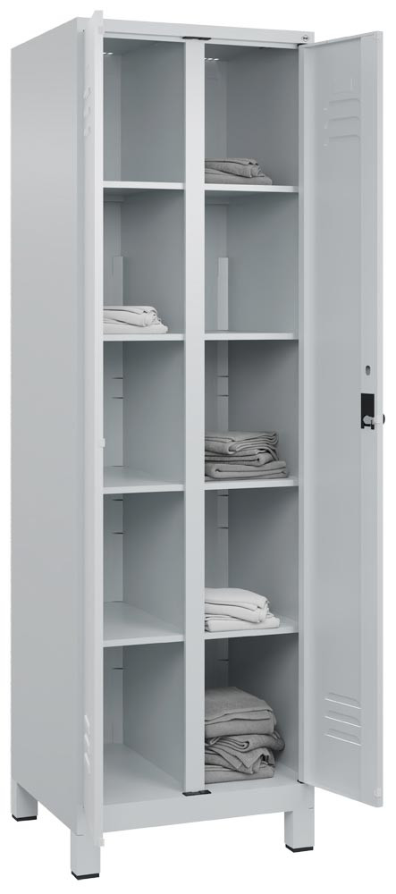Wäsche-/Garderobenschrank Premium, BxTxH 600x500x1950 mm, 2 Abteile a 300 mm, mit Füßen, Drehriegel, RAL 7035 EP562022