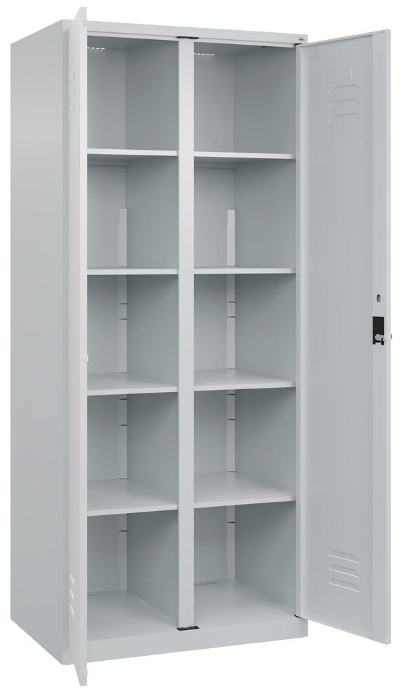 Wäsche-/Garderobenschrank Premium, BxTxH 800x500x1850 mm, 2 Abteile a 400 mm, Bodenstehend, Drehriegel, RAL 7035 EP562007