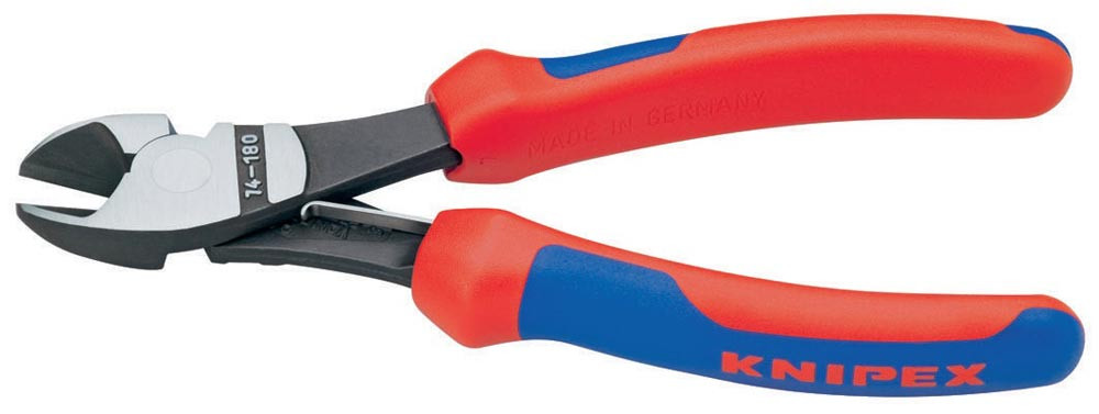 20 % Kraftersparnis gegenüber herkömmlichen Seitenschneider · mit Öffnungsfeder · Schneiden zusätzlich induktiv gehärtet, Schneidenhärte ca. 64 HRC · Chrom-Vanadin-Hochleistungsstahl, geschmiedet, mehrstufig ölgehärtet