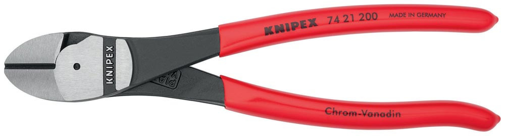 20 % Kraftersparnis gegenüber herkömmlichen Seitenschneider · 12° gewinkelt · Schneiden zusätzlich induktiv gehärtet, Schneidenhärte ca. 64 HRC · Chrom-Vanadin-Hochleistungsstahl, geschmiedet, mehrstufig ölgehärtet