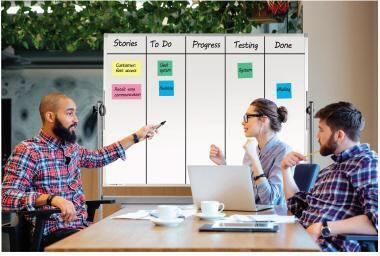 Mit Magic-Chart steht Ihnen überall und jederzeit eine Schreibunterlage zur Verfügung. Durch die elektrostatischen Eigenschaften haften die Folien auf allen glatten Oberflächen (Holz · Beton · Glas · Tapete) Einfach die Folie abrollen und an der Wand glattstreichen. Bei Bedarf lässt sich die Folie einfach abnehmen und an anderer Stelle wieder anbringen. Moderationskarten und Notizzettel haften ohne Hilfsmittel an der Folienoberfläche · einfach glattstreichen. Umweltfreundliches Material · komplett recyclingfähig. Folienrolle kann in der Verpackung in handelsüberliche Flipchart-Blockhalter eingehängt werden. Beschreibbar mit Legamaster-Boardmarkern und edding- Permanentmarkern. In umweltfreundlichen Verfahren produziert.