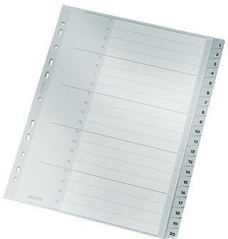 Leitz Register 12840000 1-20 DIN A4 volle Höhe 20teilig PP grau
