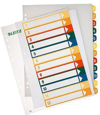 Leitz Register 12940000 DIN A4 1-12 volle Höhe PP farbig/transparent