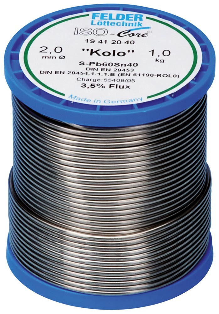 Lötdraht Kolo, Lötdrahtdurchmesser 2,0 mm, S-Pb60Sn40, Spule 500 g, Flussmittelanteil 2,5 E6018112