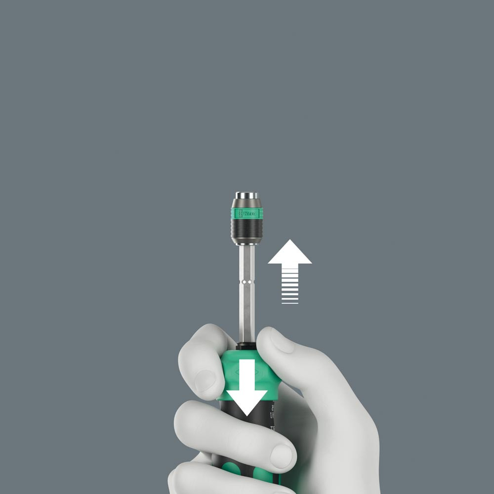 Robuster Magazin-Schraubendreher mit federunterstützendem Öffnungsmechanismus per Knopfdruck und versenkbarer Teleskopklinge mit Schnellwechselfutter für 1/4" Bit-Einsätze ∙ Klinge als Maschinenadapter für Akku-Schrauber einfach herausnehmbar ∙ Ergonomischer Kraftform-Griff aus Mehrkomponenten-Material mit Abrollschutz ∙ Im Griff integrierte Ratsche mit Feinverzahnung ∙ Innovative Ratschenmechanik ermöglicht einfaches „Zwirbeln“ bei fehlendem Widerstand der Schraube ∙ Intuitives Umschalten: Schalte ich nach rechts – schraube ich nach rechts, schalte ich nach links – schraube ich nach links ∙ Integriertes Bit-Magazin mit 6x 25 mm BiTorsion Bits ∙ Farbkennzeichnung nach Profilen und Größenstempelung ∙ Innovative Rapidaptor-Technologie für schnellen Bit-Wechsel ∙ In praktischer und robuster Gürteltasche