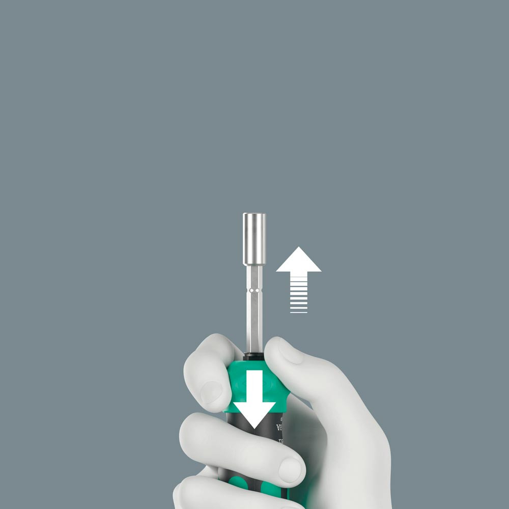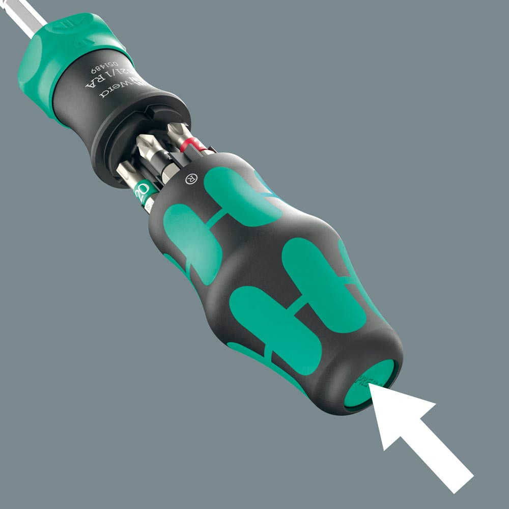 Robuster Magazin-Schraubendreher mit federunterstützendem Öffnungsmechanismus per Knopfdruck und versenkbaren Universalhalter mit Edelstahlhülse und starkem Dauermagnet für 1/4" Bit-Einsätze ∙ Klinge als Maschinenadapter für Akku-Schrauber einfach herausnehmbar ∙ Ergonomischer Kraftform-Griff aus Mehrkomponenten-Material mit Abrollschutz ∙ Im Griff integrierte Ratsche mit Feinverzahnung ∙ Innovative Ratschenmechanik ermöglicht einfaches „Zwirbeln“ bei fehlendem Widerstand der Schraube ∙ Intuitives Umschalten: Schalte ich nach rechts – schraube ich nach rechts, schalte ich nach links – schraube ich nach links ∙ Integriertes Bit-Magazin mit 6x 25 mm BiTorsion Bits ∙ Farbkennzeichnung nach Profilen und Größenstempelung ∙ Innovative Rapidaptor-Technologie für schnellen Bit-Wechsel ∙ In praktischer und robuster Gürteltasche