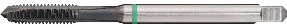 HSS-Co · Form B · Typ UNIVERSAL · vaporisiert · Grünring · geradegenutet · Flanken hinterschliffen · metrisches ISO-Gewinde · DIN 13 Blatt 1 · Toleranzfeld ISO2 (6H) · mit Schälanschnitt für Durchgangsgewinde · für Stahl, rostfreie Stähle, Sphäroguss und NE-Metalle