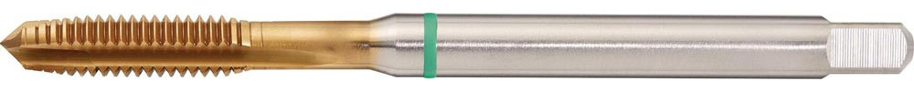 HSS-Co · Form B · Typ UNIVERSAL · TiN-beschichtet · Grünring · geradegenutet · Flanken hinterschliffen · metrisches ISO-Gewinde · DIN 13 Blatt 1 · Toleranzfeld ISO2 (6H) · mit Schälanschnitt für Durchgangsgewinde · für Stahl, rostfreie Stähle, Sphäroguss und NE-Metalle