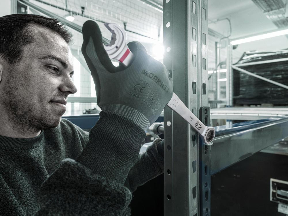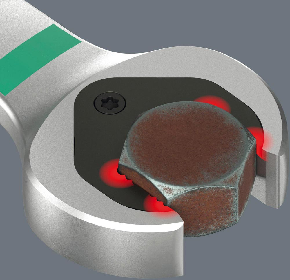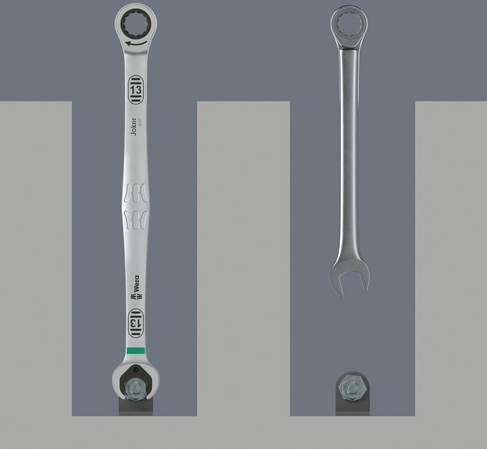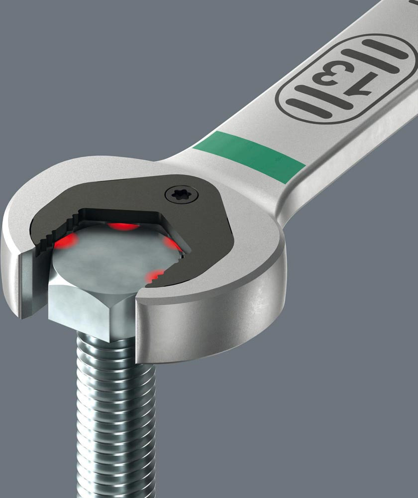 einzigartige Kombination aus Maul- und Ring-Ratschenmechanik in langer Ausführung · langer Hebel ermöglicht höhere Kraftübertragung · bessere Zugänglichkeit bei tiefliegenden Verschraubungen · Kein Abrutschen durch Endanschlag · mit praktischer Haltefunktion durch Metallplatte im Maul