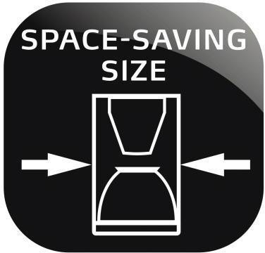 Mit Tropfstopp. Abnehmbarer spülmaschinengeeigneter Schwenkfilter. Transparenter Wassertank mit gut lesbarer Skala. Platzsparendes Design. Beleuchteter Ein-/Ausschalter.