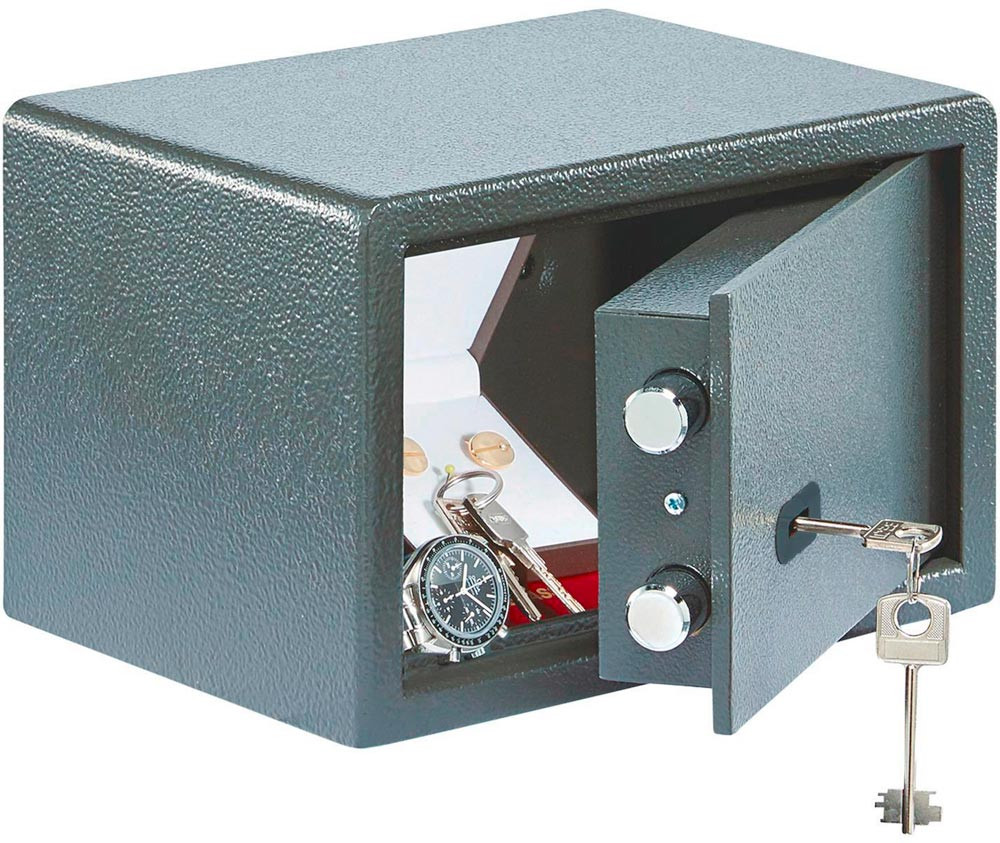 robuster einwandiger Korpus · Tür doppelwandig · Verstärkte Riegelbolzen · Aufbohrschutz · für Wand- und Bodenbefestigung vorgerichtet (inkl. Befestigungsmaterial) · ideal für den Einbau in Schränke und andere Möbelstücke