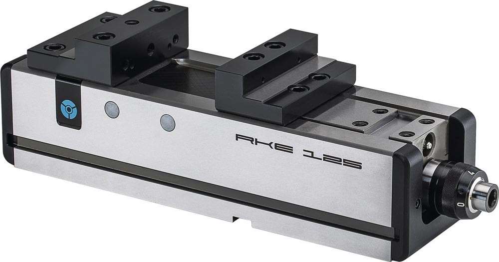 · Ausführung: Modell RKE - 3-seitige Aufspannmöglichkeit · horizontal, vertikal oder seitlich aufspannbar - Grundkörper aus Stahl - gehärtet und geschliffen - mit Kraftübersetzung