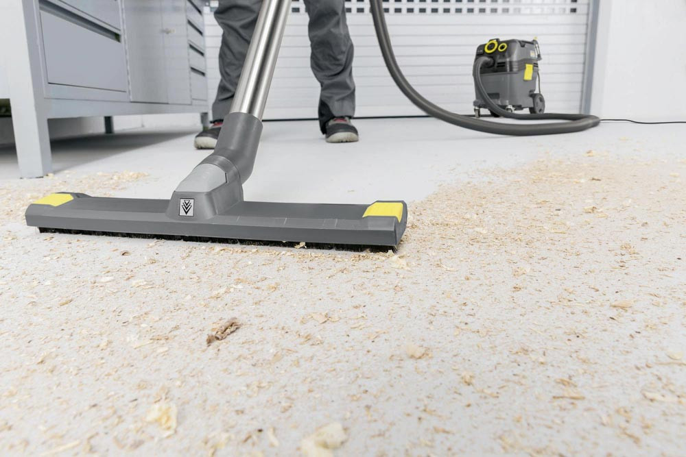 Lieferumfang: 2 Edelstahl-Saugrohre (0,55 m/35 mm), Saugschlauch 4 m mit Krümmer, Anschlussmuffe für E-Werkzeuge, 1 Filtertüte Vlies, Nass-/Trockenbodendüse 360 mm, Flachfaltenfilter PES, Fugendüse