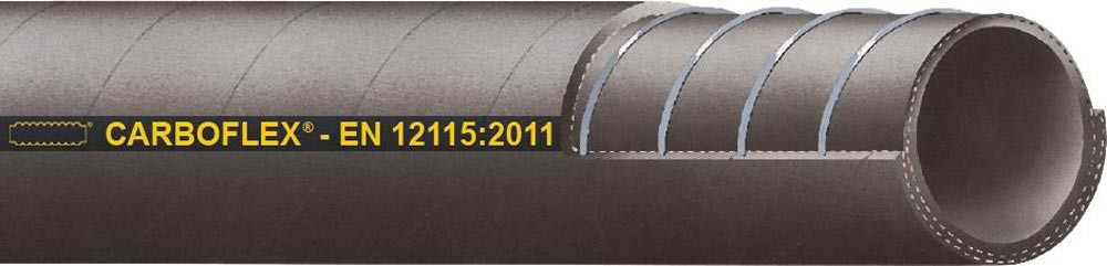 Normierter öl- und benzinbeständiger Saug- und Druckschlauch · Aromatengehalt maximal: 50% · Art der Einlage: Gewickelt · Aufdruck: Carboflex® - EN 12115:2011 NBR 1 - SD - ID .. - WP 16 bar - Ω/T - TRbF 131/T2 - § 5.5 - Quartal/Jahr · Beständigkeit Innenseele: Benzinbeständig, Biodiesel, E10, Ölbeständig · Elektrischer Widerstand Aussendecke: Elektrisch leitfähig <10⁶ Ω · Elektrischer Widerstand Schlauchseele: Elektrisch leitfähig <10⁶ Ω · Elektrischer Widerstand Seele zu Decke: Antistatisch <10⁹ Ω · Farbe Innenseele: Schwarz · Fertigungsart Innenseele: Glatt · Fertigungsweise Aussendecke: Gewickelt · Vakuum: 0,90bar