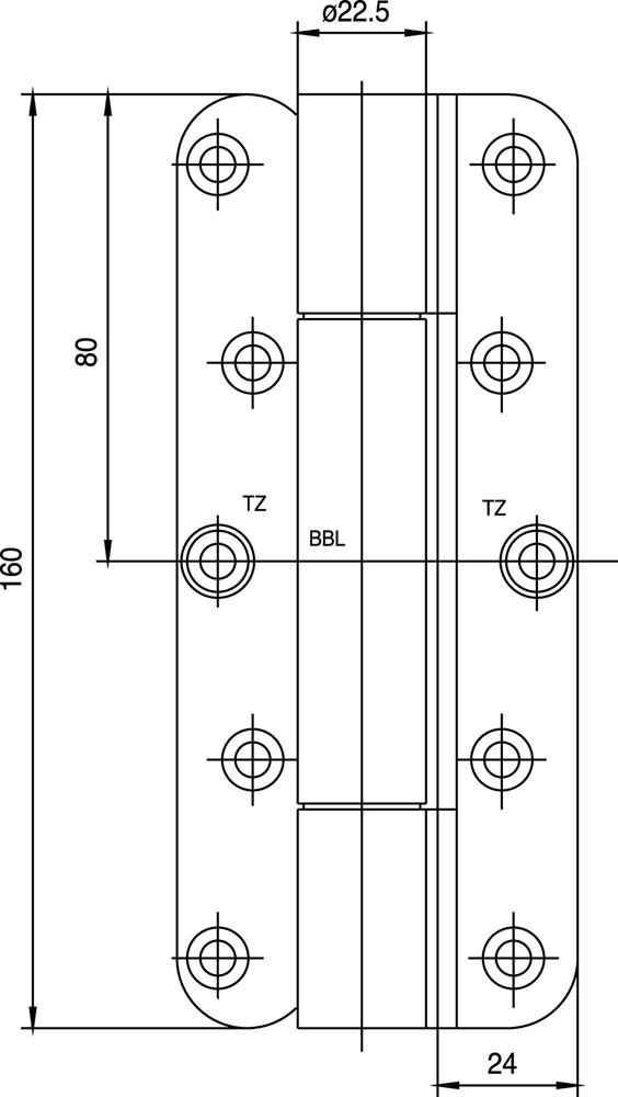 Objektband VARIANT VN 1939/160 Stahl matt vernickelt / F2 160 kg 22,5 mm DINlinks / rechts gefälzte Türen