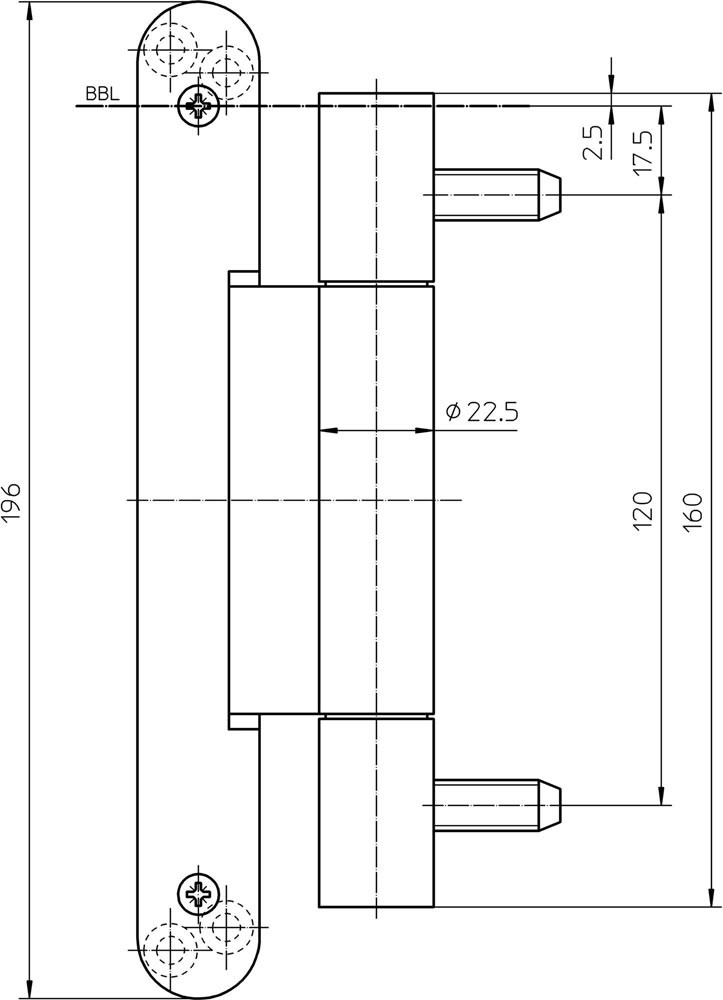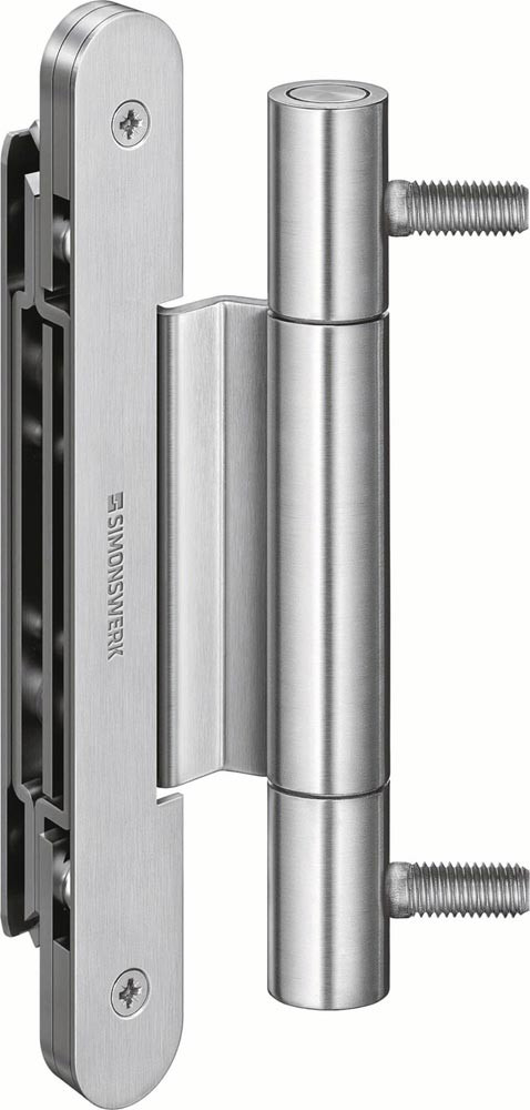 als Umrüstband für ungefälzte Objektüren an Stahlzargen · verdeckt liegende · wartungsfreie Axial-Radial-Gleitlager · DIN links / rechts verwendbar · mit komfortabler 3D verstellbarem Aufnahmeelement im Türflügel für ungefälzte Türen zum Umrüsten an Stahlzargen mit Blindeinnietmutter M10 · Gesamtlänge 160 mm · Rollen- D. 22,5 mm