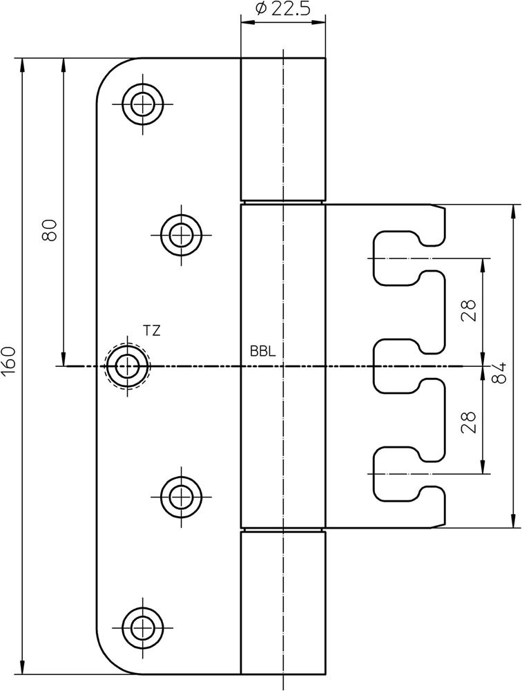 Objektband VARIANT VX 7729/160 Stahl matt vernickelt / F2 200 kg 22,5 mm DINlinks / rechts stumpfe Türen