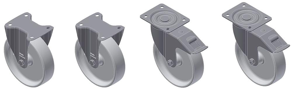 · 2 Lenkrollen mit Feststeller und 2 Bockrollen · Raddurchmesser 200 mm · Bauhöhe 240 mm · Traglast bis 2500 kg