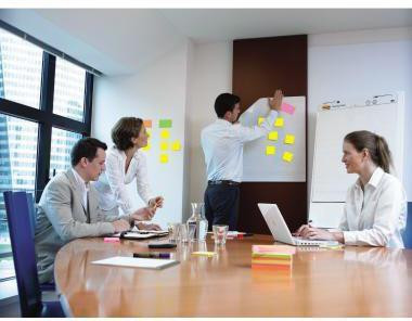 Mit dem Post-it® Meeting Chart TableTop sind Sie für spontane Meetings oder kleine Arbeitsgruppen gut vorbereitet. Ideen oder Ergebnisse können unkompliziert · für alle sichtbar · notiert werden. Sie brauchen nichts weiter als einen Tisch - durch den eingebauten Standfuß ist das Post-it® Meeting Chart TableTop einfach auf den Tisch aufzustellen und kann nach dem Meeting leicht zusammengeklappt und verstaut werden. Post-it® Meeting Charts haften auf nahezu allen Wandflächen und können rückstandsfrei abgelöst werden. Zudem ist das Papier dank seiner speziellen Oberflächenbeschichtung durchschreibsicher. Auch der Transport ist kein Problem: Der Block ist mit einem Tragegriff versehen - so transportieren Sie die Meeting Charts ganz einfach.