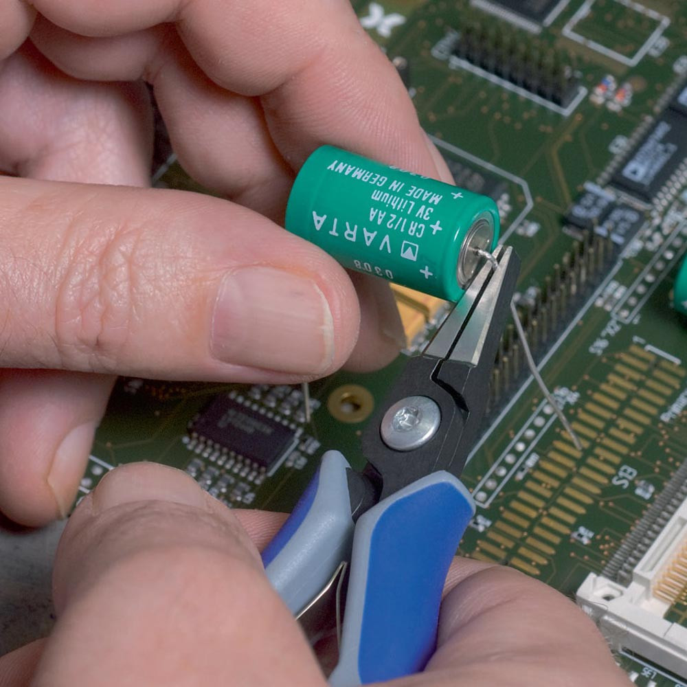 für feinste Schneidarbeiten z. B. in Elektronik und Feinmechanik · zum Greifen, Halten und Biegen · ca. 20% weniger Gewicht · geschraubtes Gelenk · Öffnungsfeder · Chrom-Vanadin-Kugellagerstahl, geschmiedet