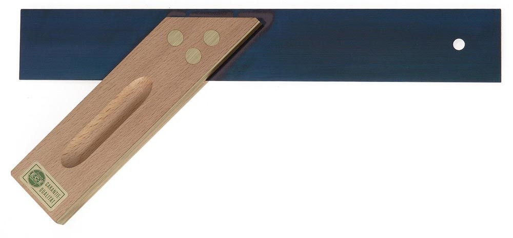 mit blauer federnd harter Stahlzunge · Schenkel aus Buchenholz mit handlicher Hohlkehle und eingenuteter Messingschiene