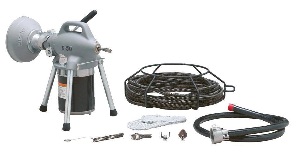 Kompaktes, vielseitiges Profi-Gerät zum Reinigen von Spülen-, Dusch- und Bodenabläufen ∙ Einsetzbar mit 3 verschiedenen Spiralgrößen 8 mm (5⁄16"), 10 mm (3⁄8") und 16 mm (5⁄8") ∙ Speziell entwickelte, bedienerfreundliche, sofort greifende Spiralenkupplung ∙ Mit 1/6-PS-Motor ausgerüstet