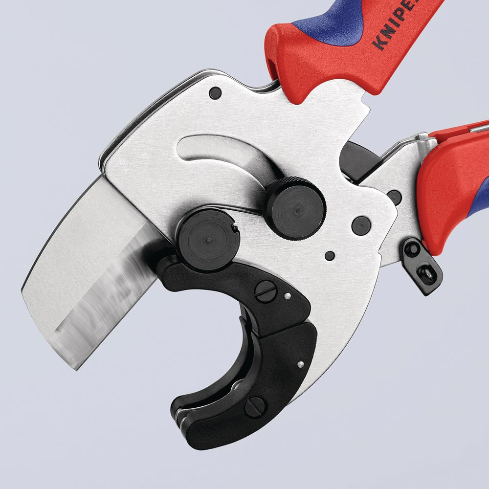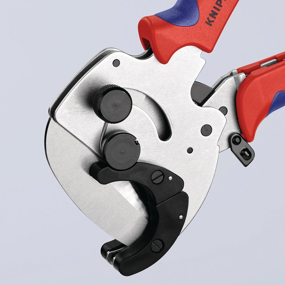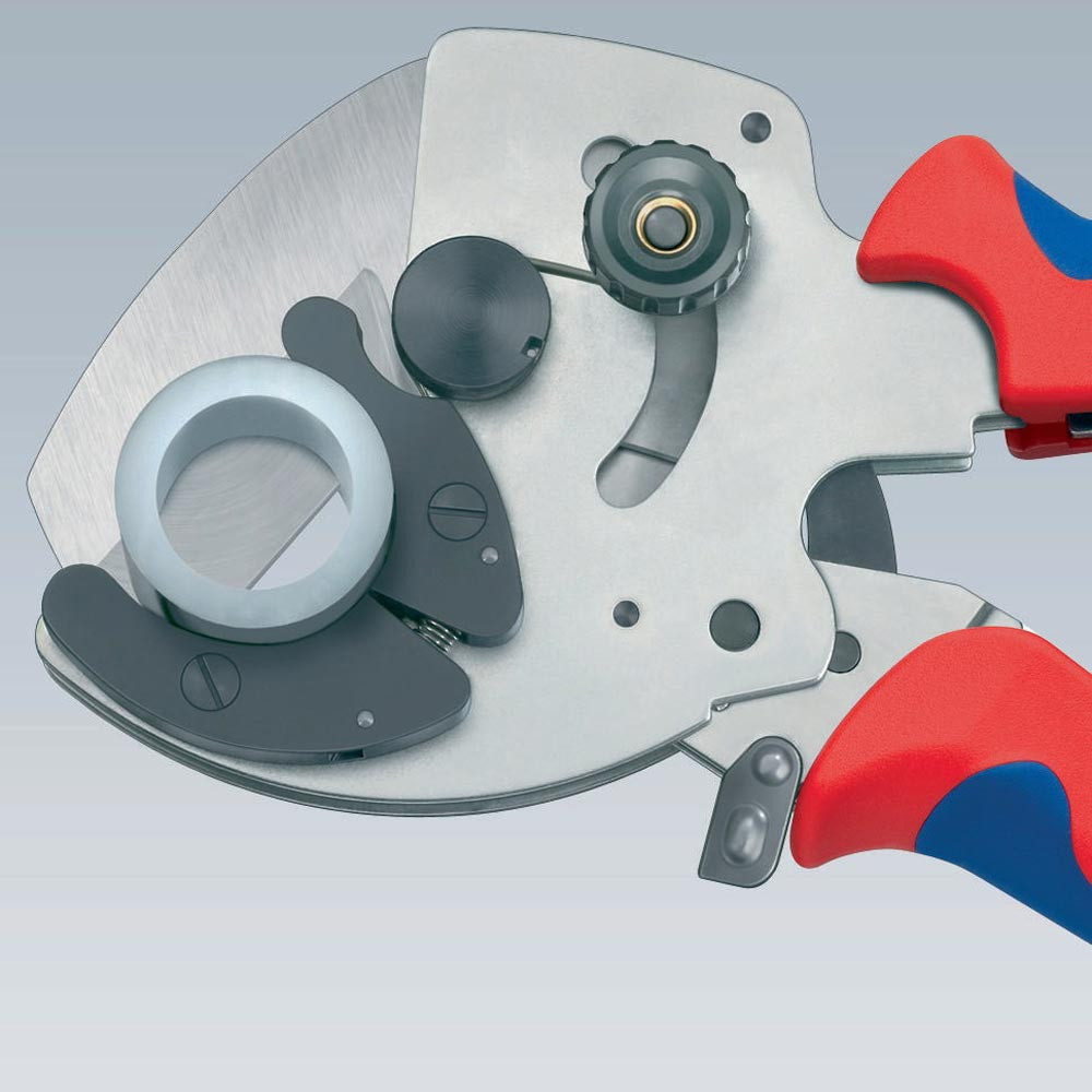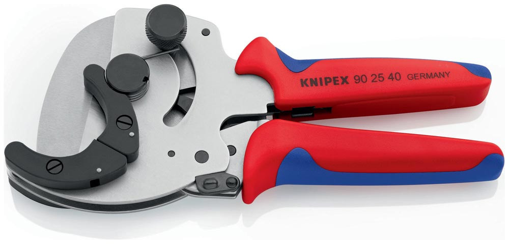 für Verbund- und Kunststoffrohre · zum Schneiden dickwandiger Rohre Ø 26 - 40 mm · schneidet Rohre nach dem Ratschenprinzip · Werkzeugkörper: Chrom-Vanadin-Elektrostahl in Sondergüte, ölgehärtet · Messer: Spezial-Werkzeugstahl, ölgehärtet, auswechselbar
