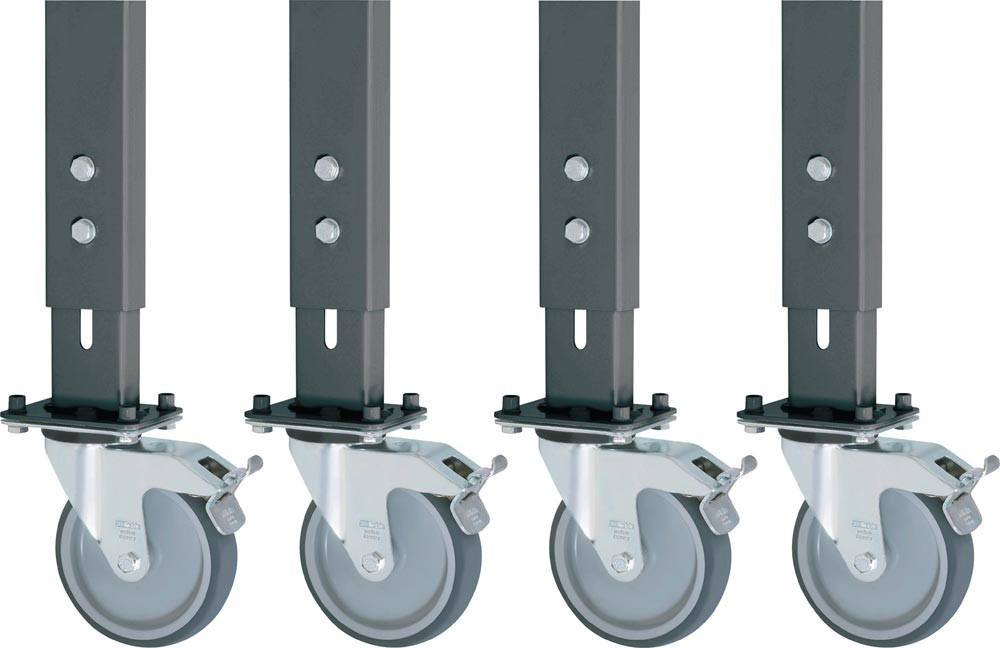 passend für Werktische · Rollen Ø-125 mm, Bauhöhe 150 mm · stufenlose Einstellung der Arbeitshöhe von 910-1230 mm