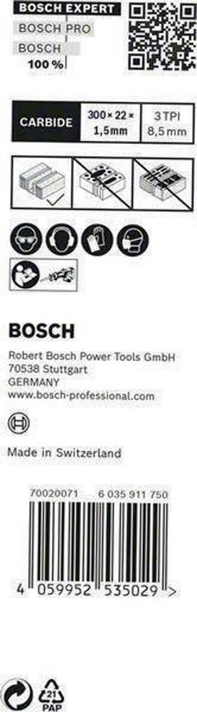 Säbelsägeblatt Expert Aerated Concrete Länge 300 mm Breite 22 mm Zahnteilung TPI 3 8,5 mm S-Schaft 10 Stück / Karte
