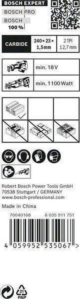 Bosch Carbide-Technologie zum Schneiden von Hohlziegeln · sein breiter Körper und die Stärke sorgen für Stabilität für einen präzisen Schnitt · passend für alle S-Schaft-Säbelsägen